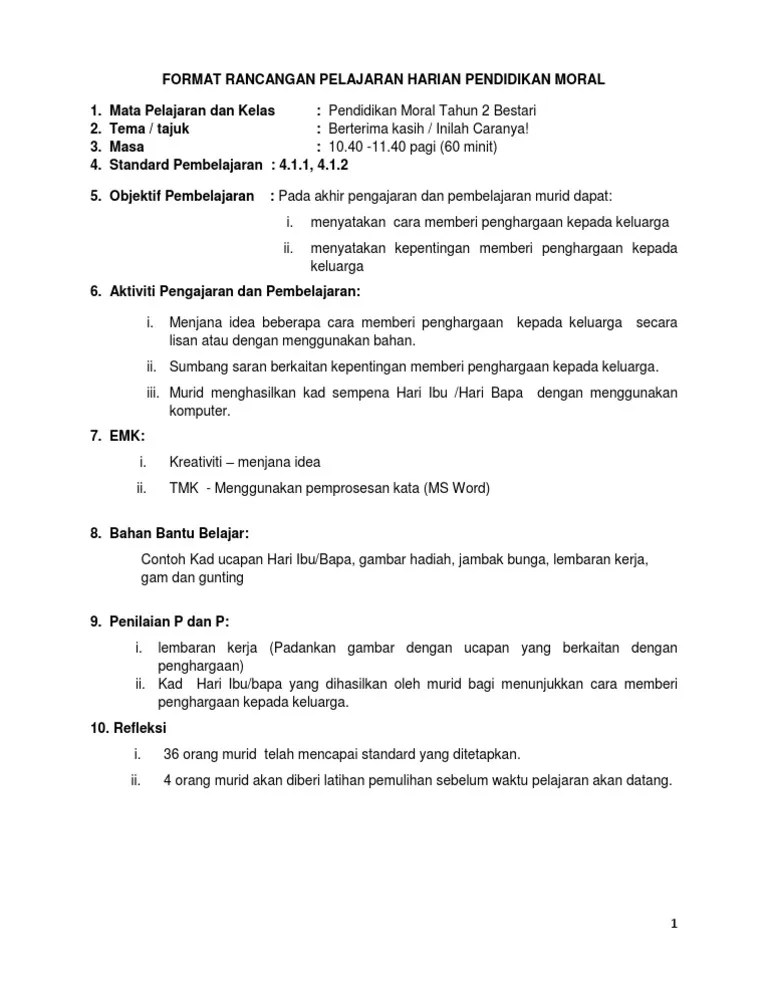 Tapak rph m2p pendidikan moral tahun 1 hingga 6 bagi penggal 3 sesi 2021 2022 mampatan, pecutan pengayaan untuk kegunaan guru. Di sini juga admin kongsikan rpt bagi tahun 1 2 3 4 5 dan 6. Rancangan pengajaran harian pendidikan moral tahun 4 kssrtahun:tahun 4 bestari. Rph pendidikan moral tingkatan 4 (m1).